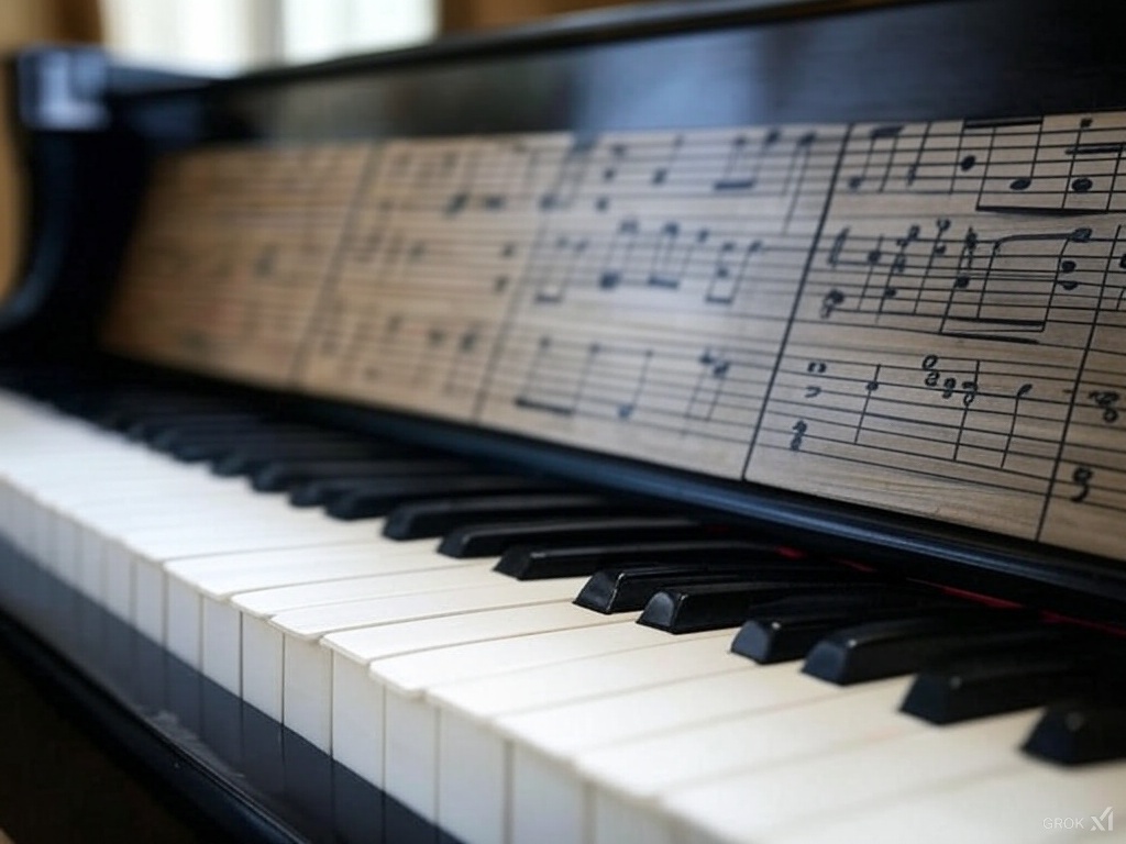 Musician's hands playing wooden piano keys in a high contrast image, capturing musical expression.